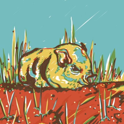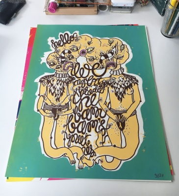 Siebdruck. Limited edition."Its a pet". Gruppenausstellung mit der Künstlergruppe "Die Bambams". 30 cm x 30 cm.